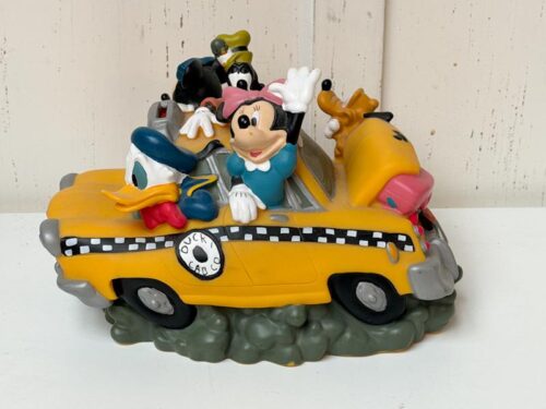 Vintage Disney design spaarpot gele taxi met Disney figuren