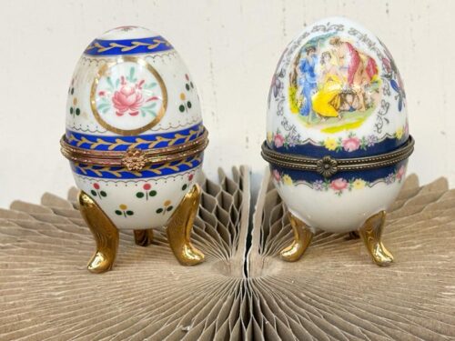 2 Vintage porselein geschilderde eieren