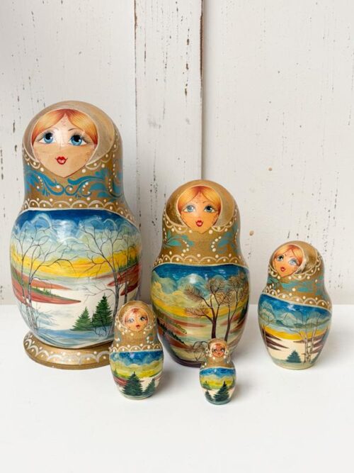 5 Kleine vintage handgemaakte vazen: 4 van porselein en 1 glazen vaas
