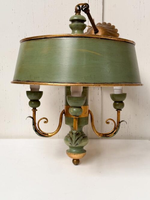 Franse Bouillotte antiek hanglamp groen- goudkleurig | getest