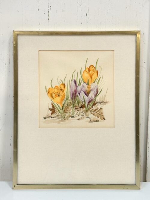 Vintage zeefdruk schilderij uit 1982 in lijst