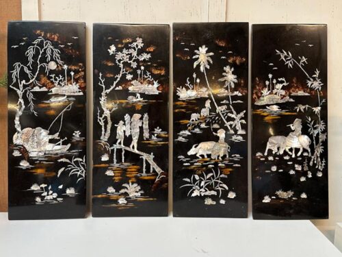 Vietnamese art panelen 4 stuks inlegde parelmoer