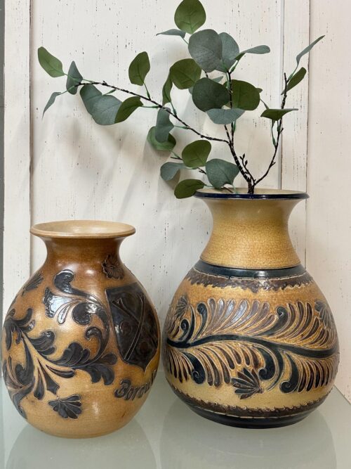 2 Mooie vintage aardewerk handwerk en hand geschilderd vazen