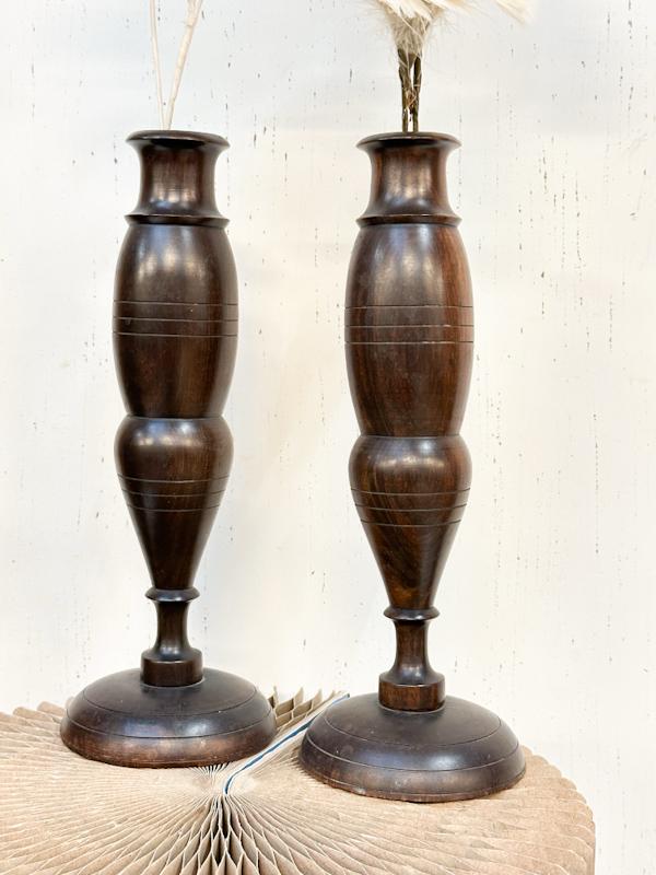 2 Antieke/vintage houten mooie handgemaakte vazen | ook als kandelaars gebruiken