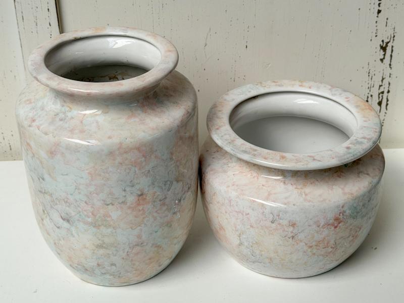 2 Keramieken marmerlook plantenpotten nieuw