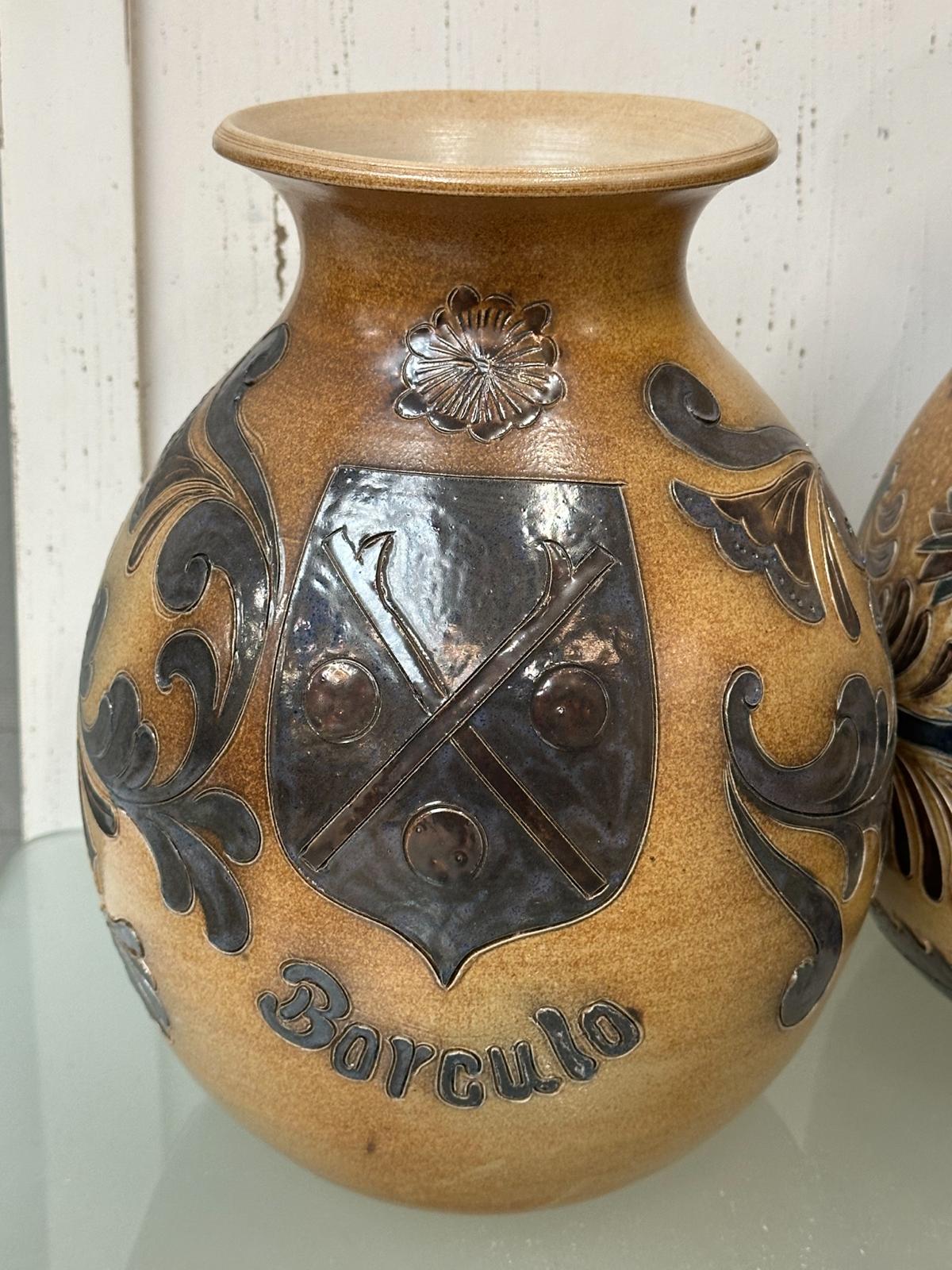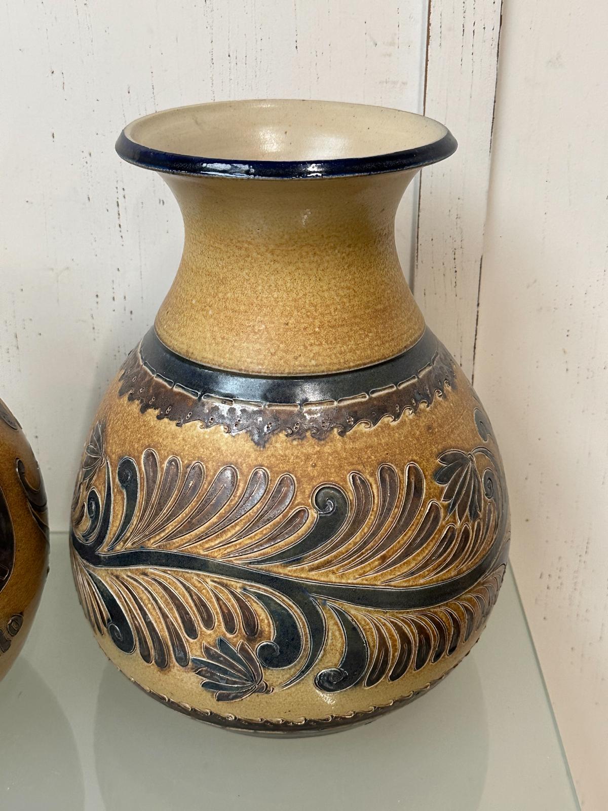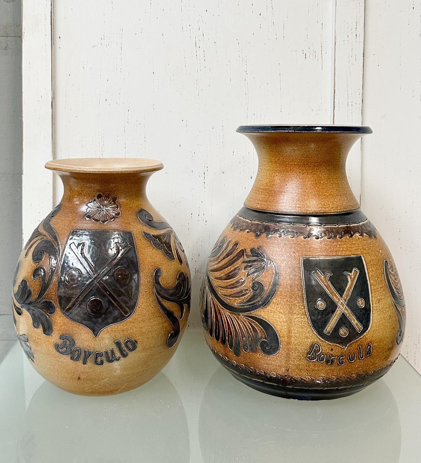 2 Mooie vintage aardewerk handwerk en hand geschilderd vazen