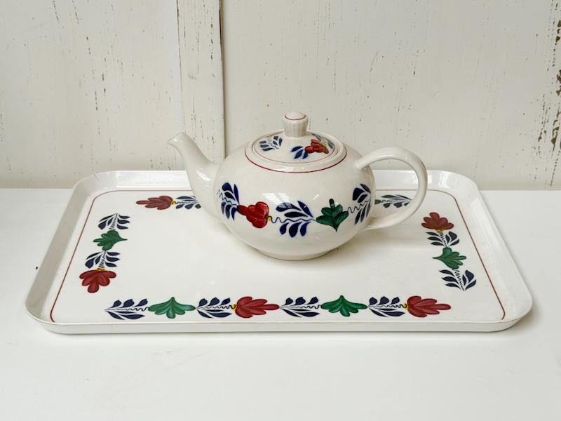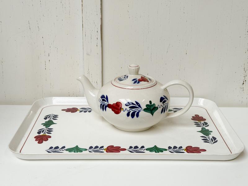 2 Vintage Boerenbont items: 1 grote theepot + 1 dienblad (29 x 44 cm)
