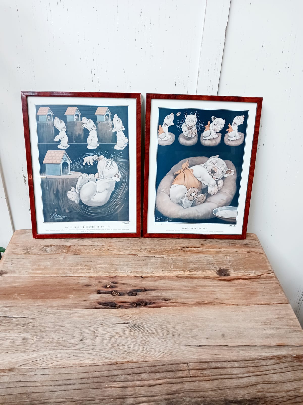 2 Vintage “Bonzo the Dog” prent in oude lijst