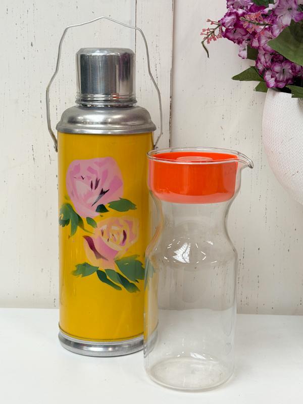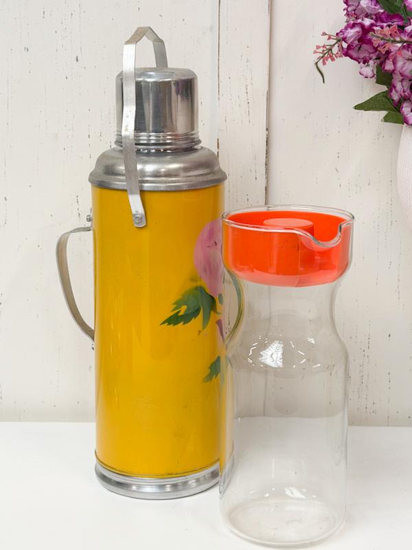- 2 Vintage items: 1 glazen kan + 1 thermoskan 1.2 liter