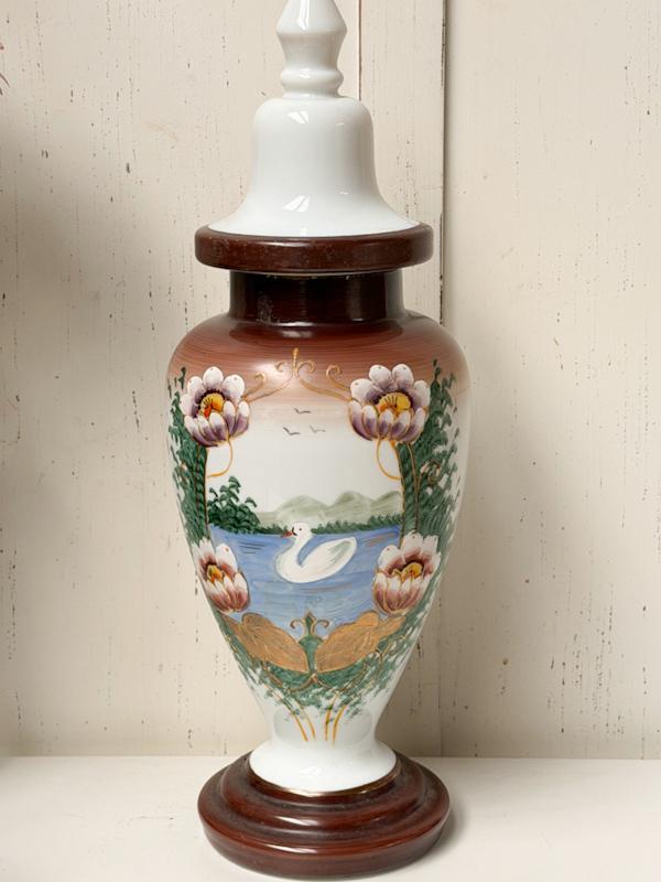 Antieke decoratieve dekselvaas handgeschilderd