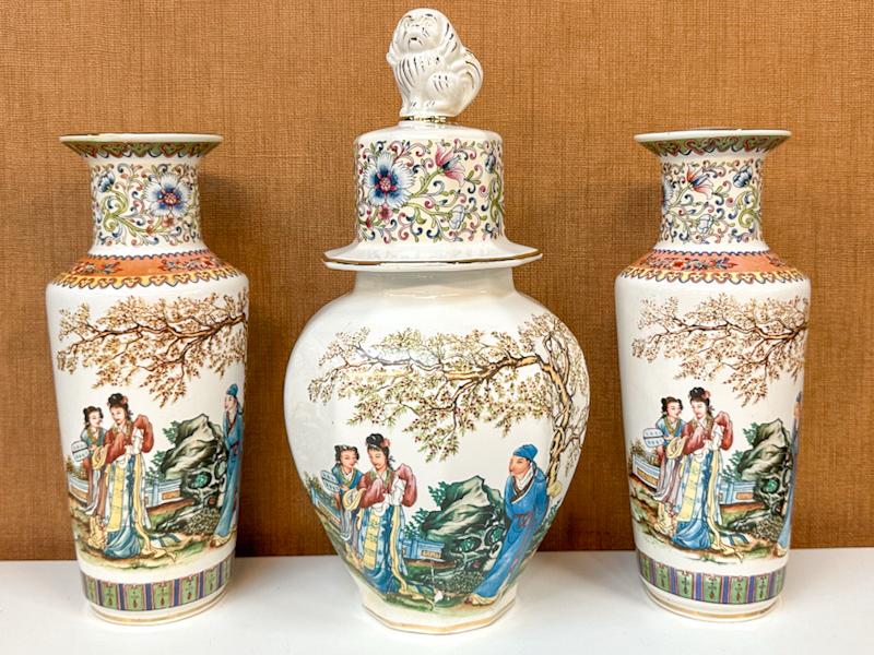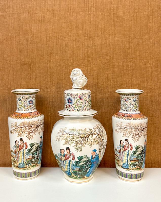 Antieke/vintage porseleinen Chinese design vazen set 3 stuks