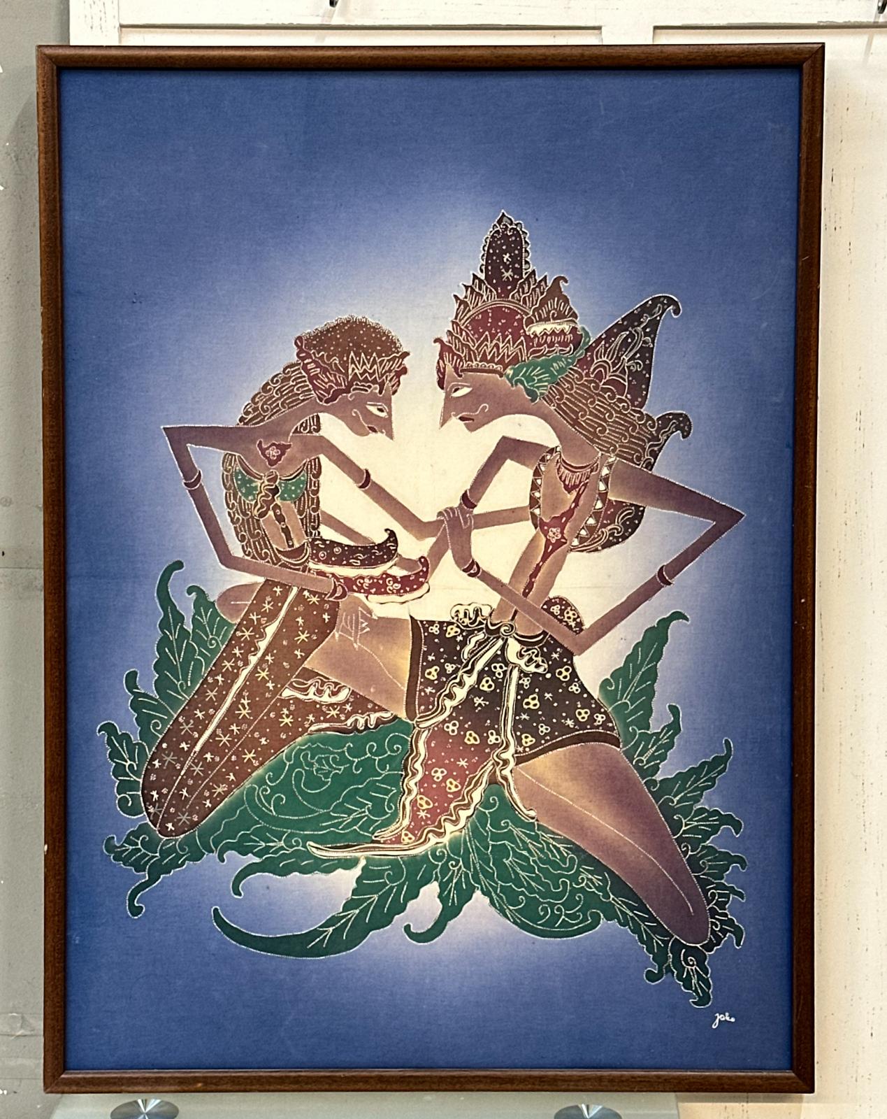 - Balinese art, schilderij/afdruk op doek in lijst gesigneerd