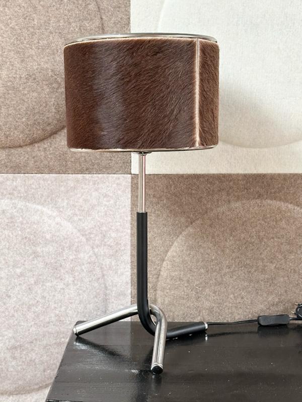 Design tafellamp (van de Heg lamp) kap van koeienvel getest