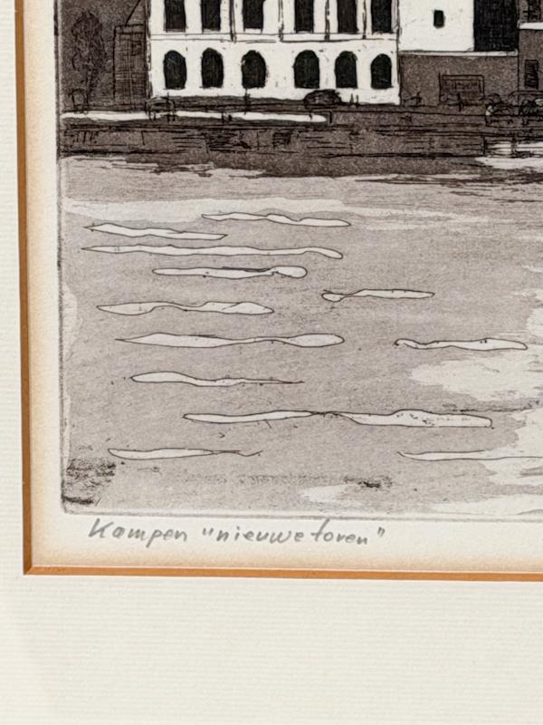 Ets “Kampen nieuwe toren” gesigneerd door Jon. van den Noort 1986 in lijst