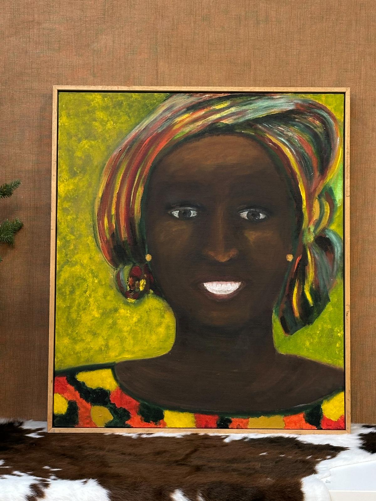 - Olieverf schilderij Afrikaanse vrouw op canvas