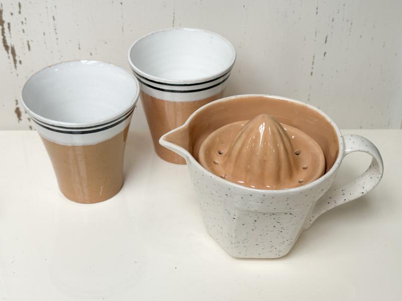 Porseleinen sinaasappelpers + 2 porseleinen bekers nieuw