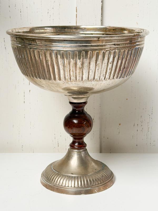 Verzilverde decoratieve vintage schaal/fruitschaal op voet