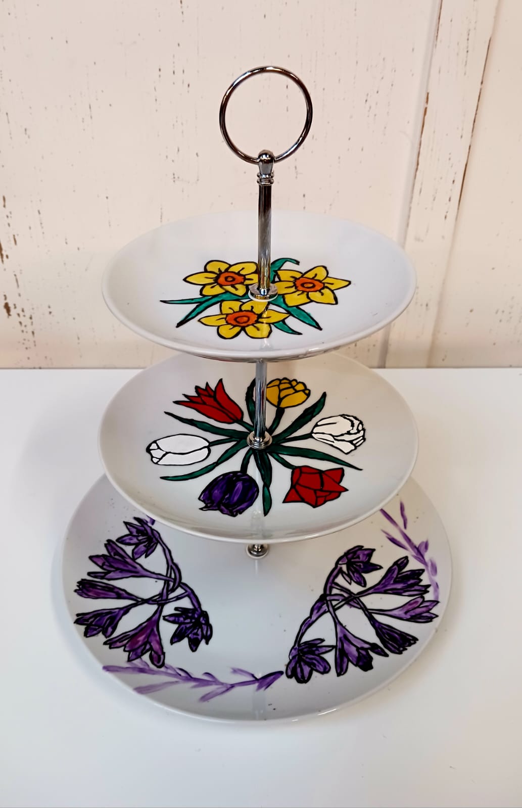 - Vintage 3 laagjes porseleinen serveerschaal handgeschilderd