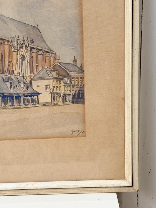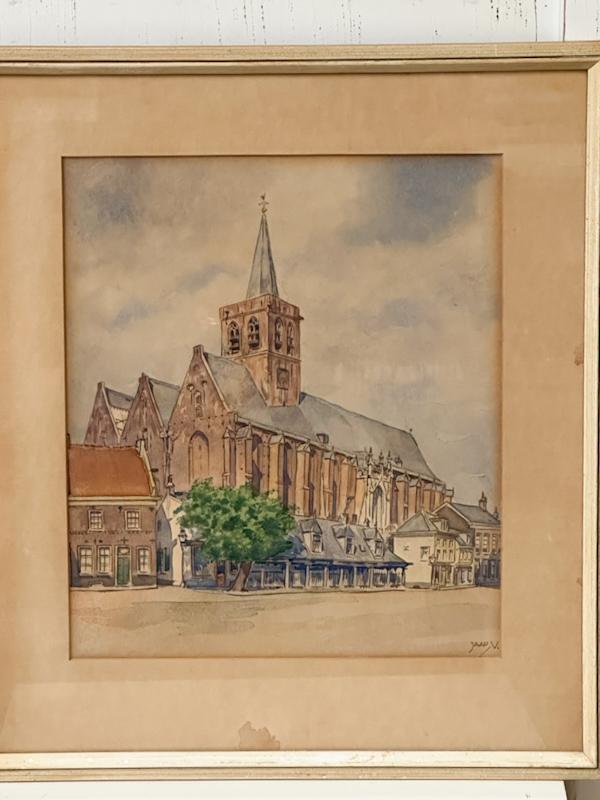 Vintage acryl schilderij van mooie Sint-Joriskerk Amersfoort gesigneerd in lijst
