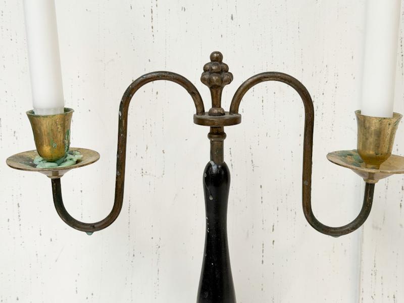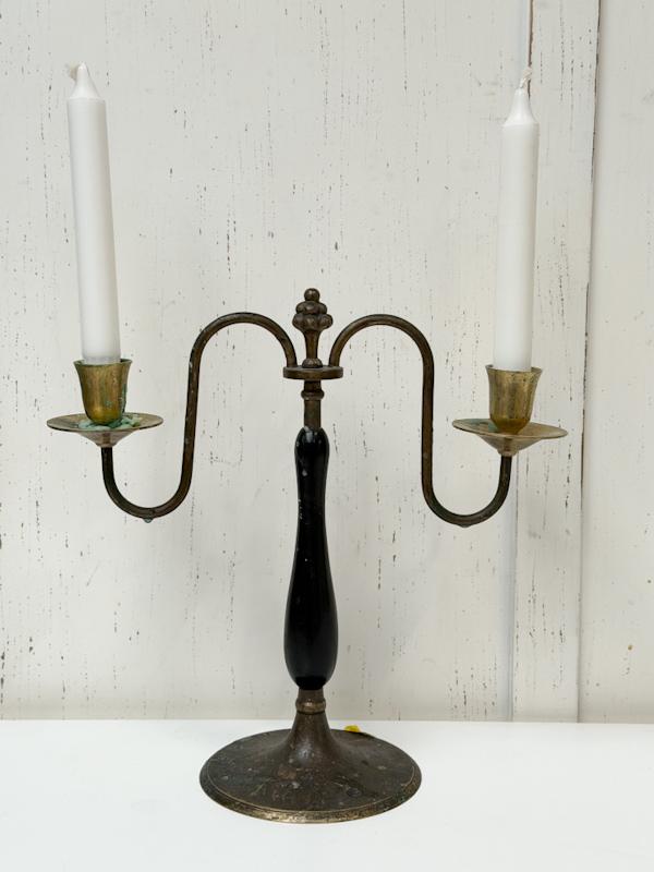 Vintage design Art Deco kandelaar van metaal( bronz) en hout