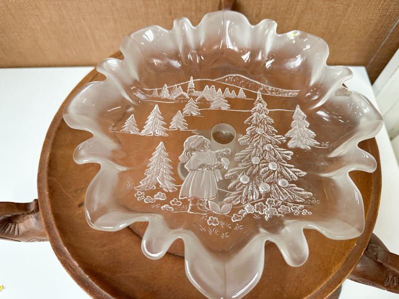 Vintage kristallen kerstvoetschaal/ snoepschaal