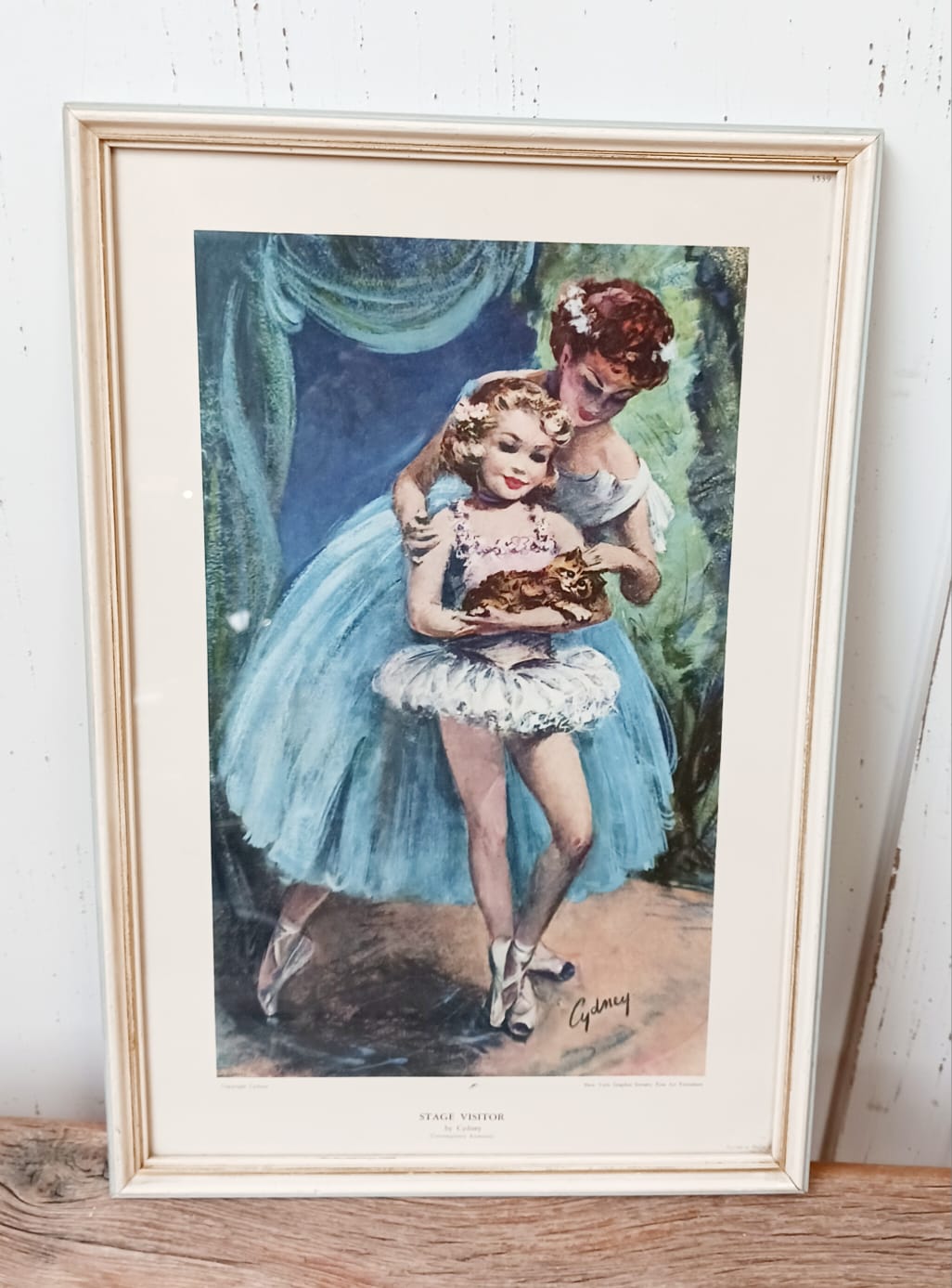 - Vintage oude prent “Ballerina’s” in oude lijst