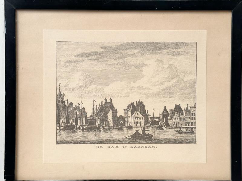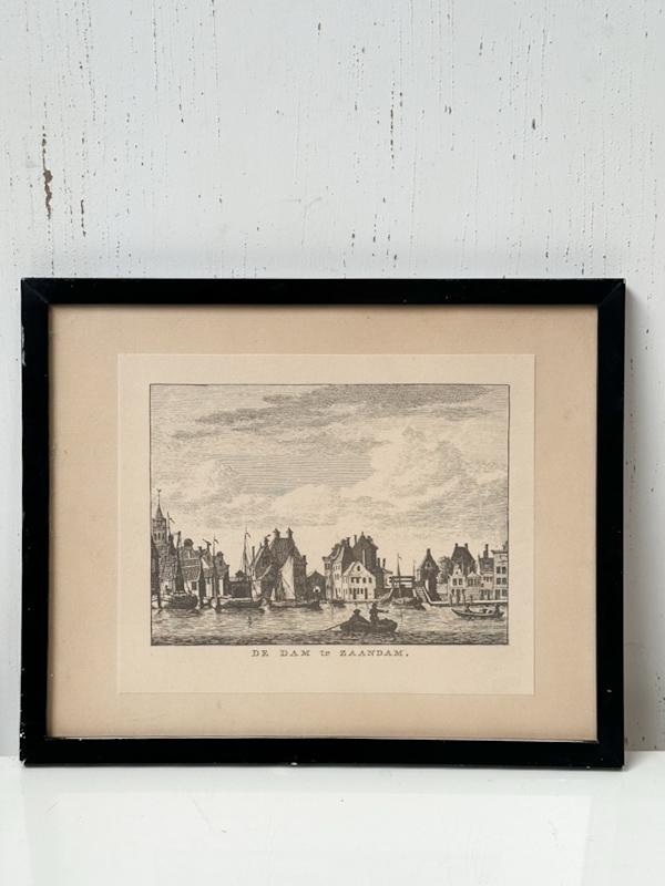 Vintage oude prent “De dam te Zaandam” in oude lijst