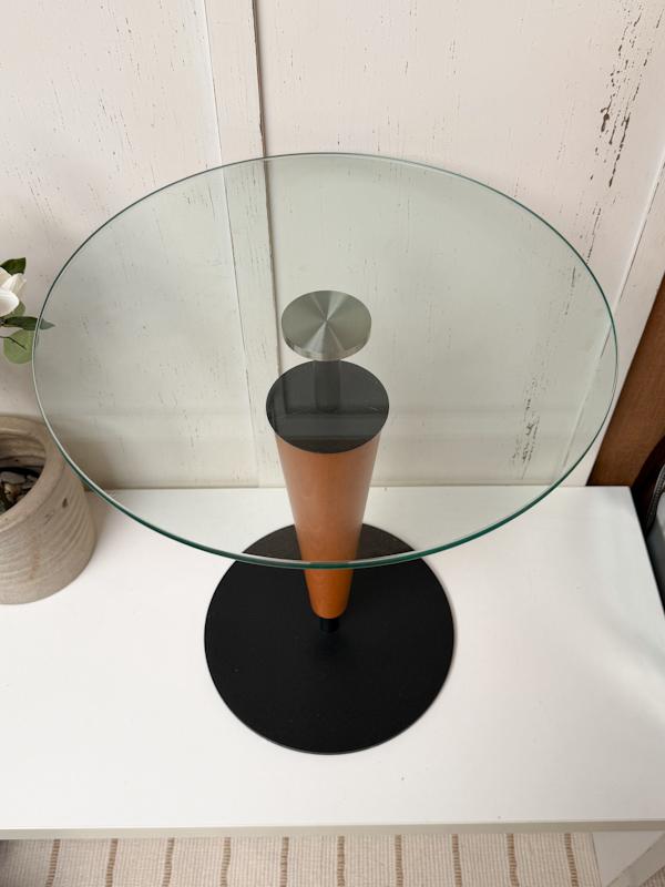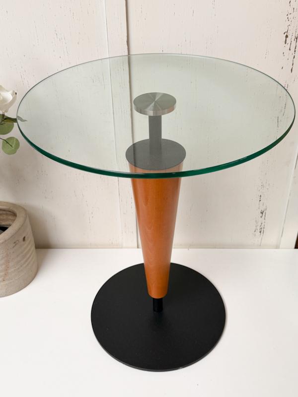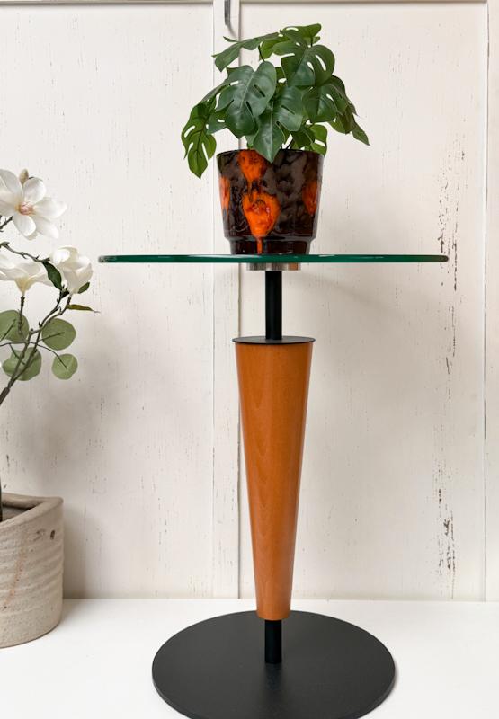 - Vintage paddenstoeltafel van hout, metaal en glas jaren 1970